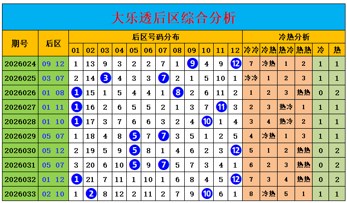 上期纪念:大乐透第2026033期:前区03、05、07、09、18,后区02、10,前区奖号和值为42,三区比为4:1:0,后区开出冷热组合02、10