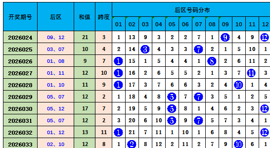 一区(01-12):上期开出4个奖号。最近10期该区开出22个号码,总体发达较热。本期该区关心1个号码05。