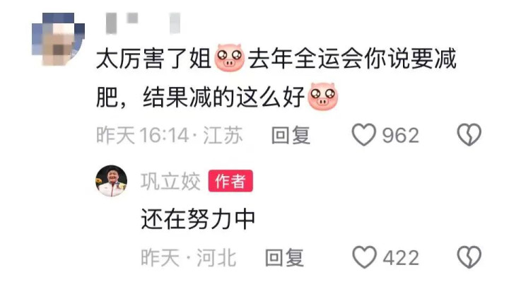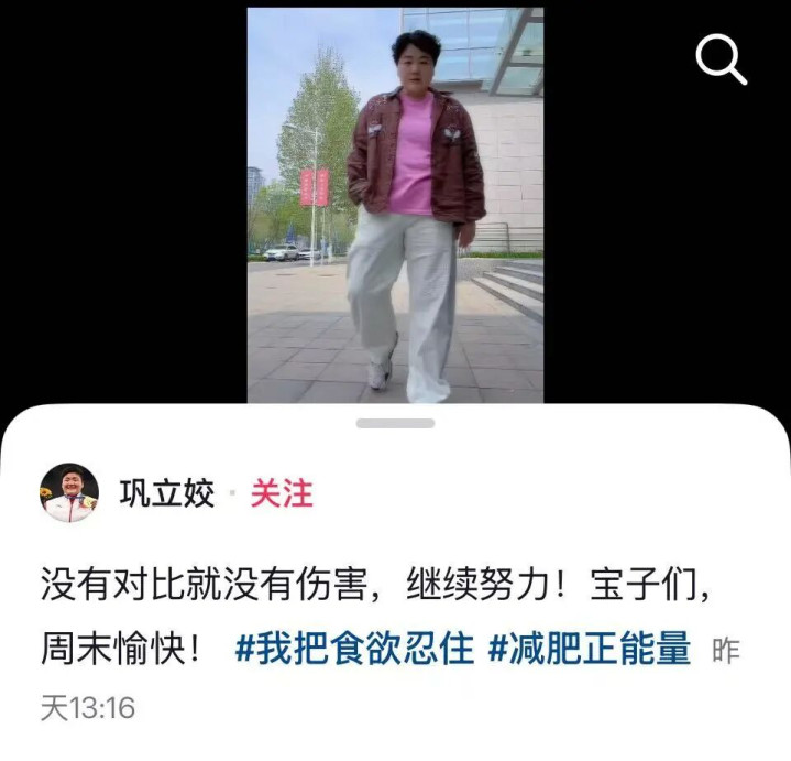 奥运冠军巩立姣:将减重50斤,变漂亮