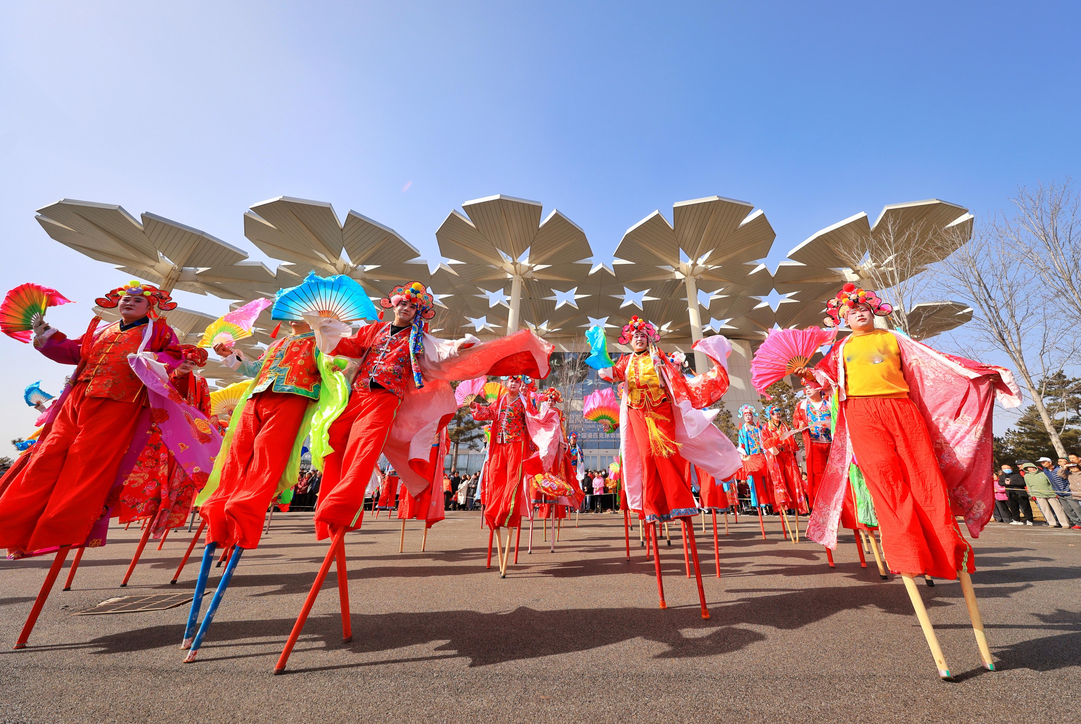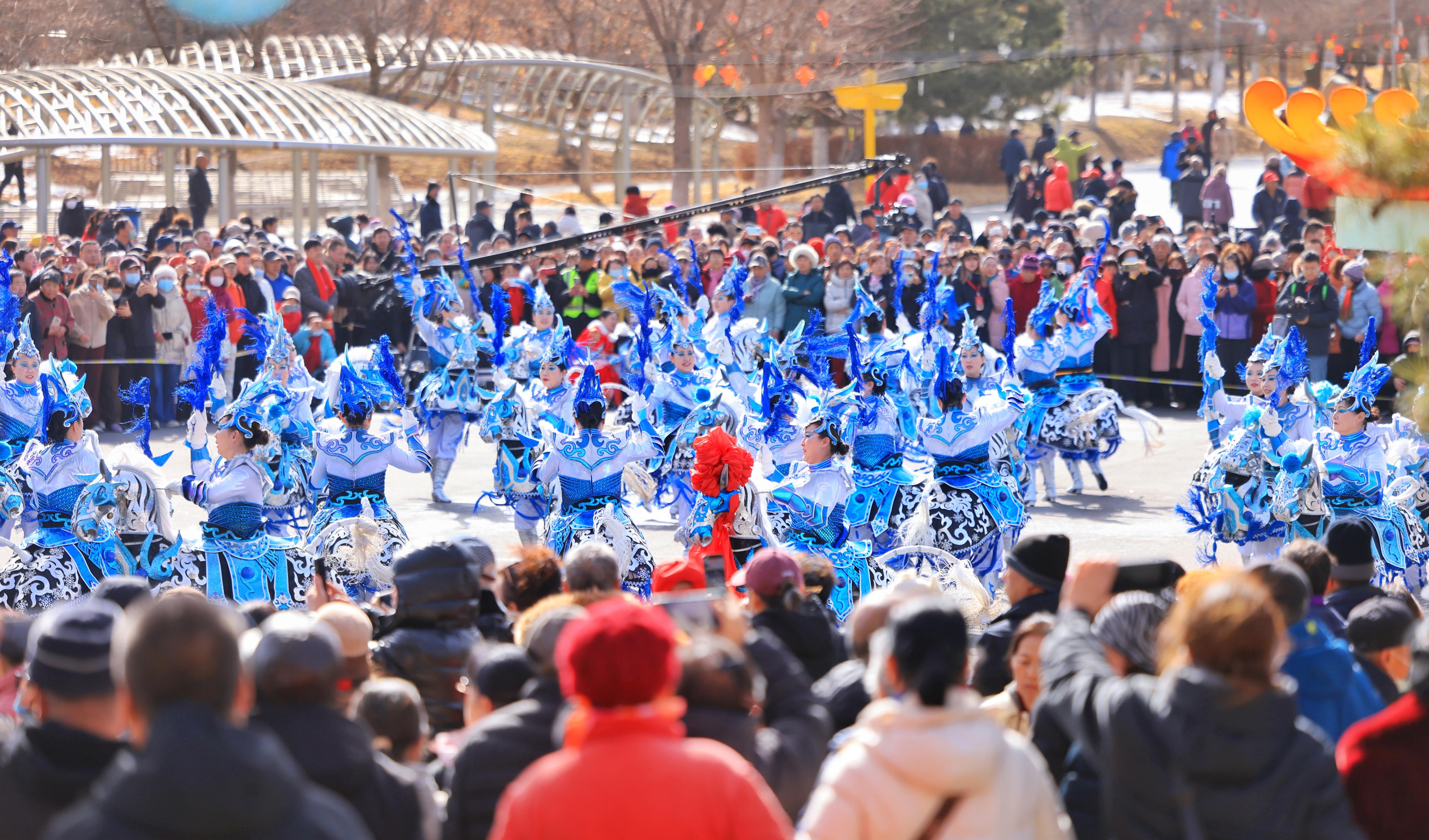 3月3日上昼,延庆区元宵节花会展演在北京世园海外旅游度假区精彩献艺,来自全区各州里、街说念的近30支优秀花会队列王人聚一堂,以高跷、秧歌、旱船、竹马等传统习惯节目,与强大市民旅客共庆元宵佳节。