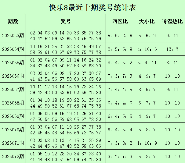 福彩欢喜8第2026072期开奖转头:01 05 19 22 28 30 34 37 38 40 41 44 48 50 51 54 59 74 75 80,其中奖号四区比为3:7:7:3,冷温热码比为5:8:7,大小比为10:10,和值为830,同尾号码为30 40 50 80、01 41 51、34 44 54 74、05 75、28 38 48、19 59。