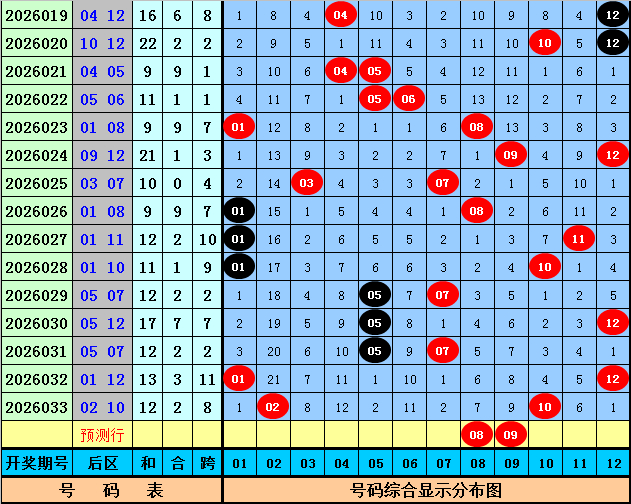 前一区(01-12):最近10期出号22个,施展比拟活跃,前区奇偶比为11:11,辉煌优配奇偶号码出号基本抓平,上期前一区大热开出4个奖号,全为奇数号码,本期矜重前一区号码迟缓温冷,矜重奇数号码热出,眷注号码01。
