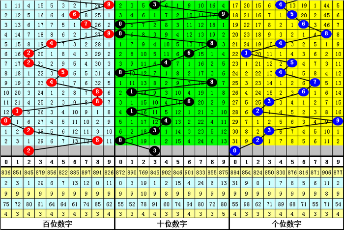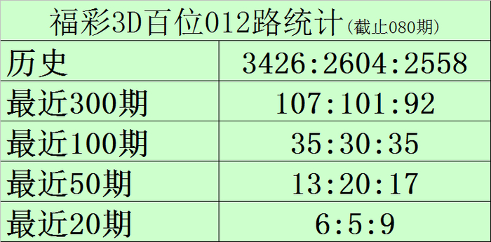百位保举:百位最近20期号码012路比为6:5:9,当今0路号码遗漏2期,1路号码遗漏3期,2路号码遗漏0期,另外0-9号码遗漏期数隔离为:
