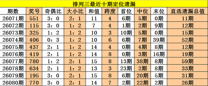 开奖转头:陈列三第2026080期奖号:770,定位直选遗漏值2期、22期、2期,遗漏总值为26期。