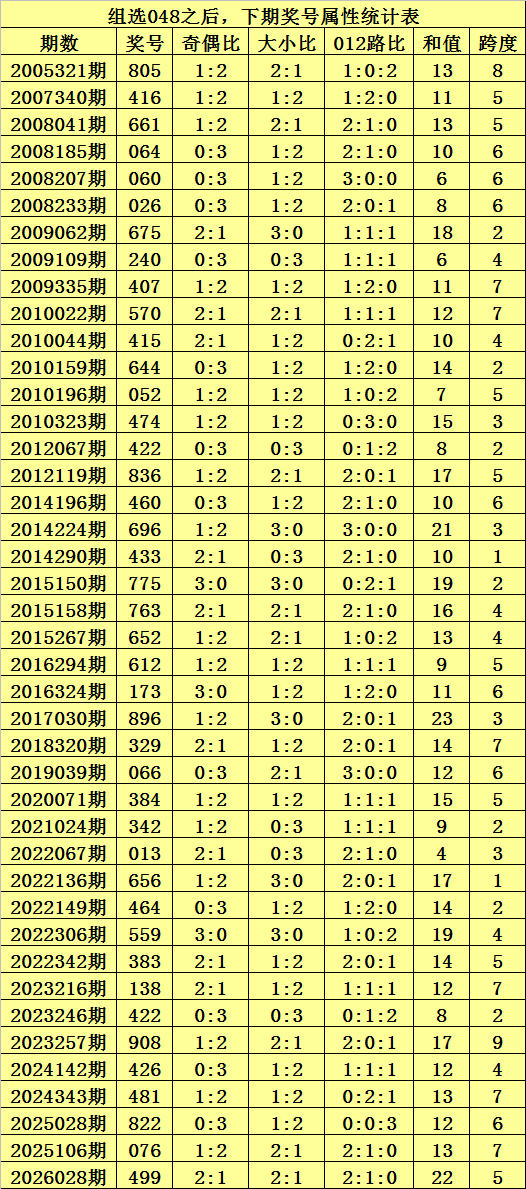 一、直选048分析:摆设三最近3期永诀开出直选号码:770历史出现次数为7次、690历史出现次数为8次、048历史出现次数为7次,本期提防历史上已开出7次傍边的直选号码。