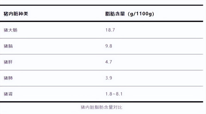 由表不错看出,猪脑的脂肪含量是猪肺和猪肝的 2 倍以上。因此,它在猪内脏里算是高脂选手。