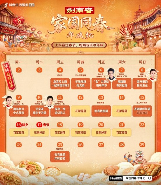 “年味”不仅仅回忆里的“老式样”,更是每个东谈主齐参与更新的“及时动态”。刻下上抖音搜索“家国同春年味纪”追更节目,随着明星“过年搭子”云打卡各地年俗,沿途解锁新春庆典感;共享你家的专属年味现场,让咱们沿途防守年味,开启慈悲的马年新春!(周晴)