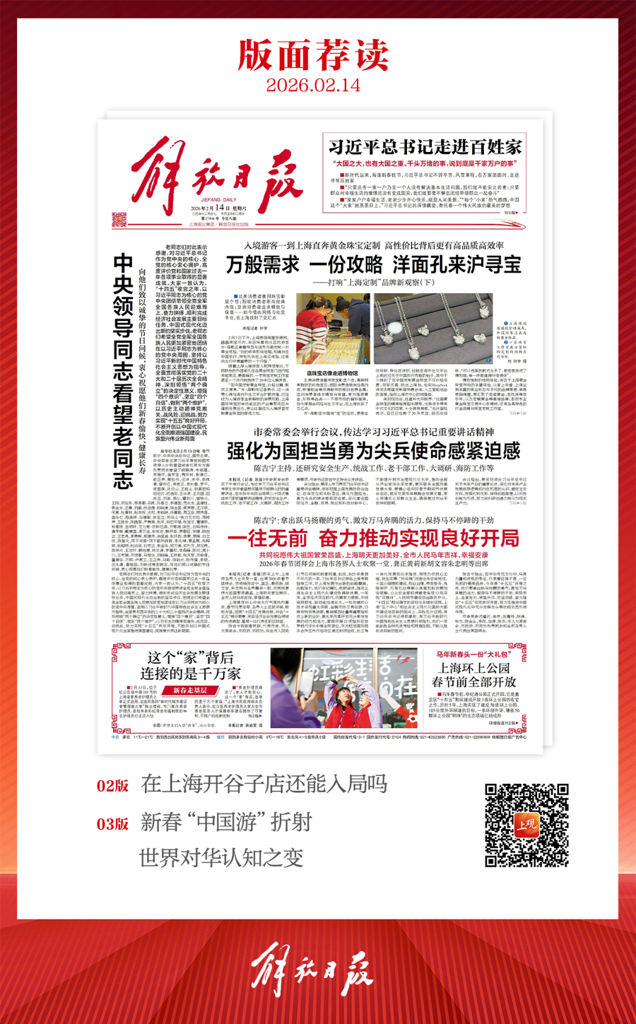 早上好!上不雅新闻『早读』来啦!2026年2月14日 星期六 农历腊月廿七上海多云,11~21℃
