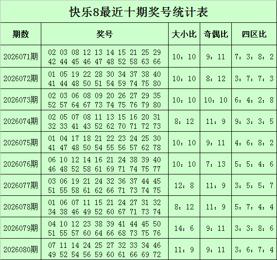 福彩闲隙8第2026080期开奖回顾:07 11 14 24 25 27 32 33 34 46 49 52 54 56 59 60 61 66 69 72,其中奖号四区比为3:6:7:4,奇偶比为9:11,大小比为11:9。