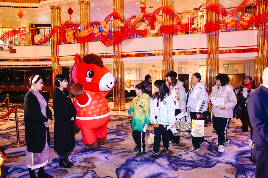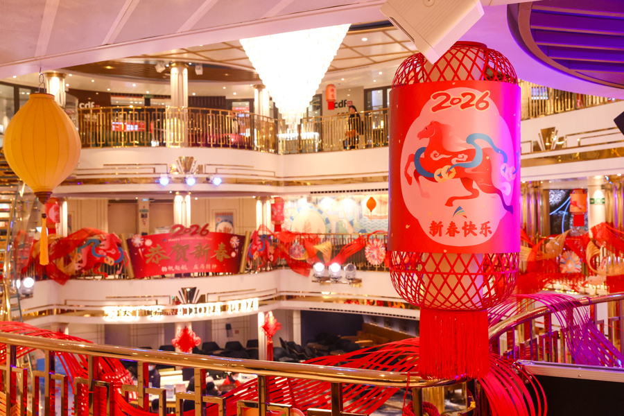 8日,“爱达·魔齐号”上处处可见灯笼、中国结,新春氛围浓厚。“红运儿”李女士告诉记者,她此次带着全家出游遴荐“爱达·魔齐号”是因为“一直对咱们的国产大邮轮充满兴趣,思亲自体验一番,”同期船上敦煌主题上演、传统文化展示等步履安排和丰富的中餐遴荐,让她以为“更合全家东说念主口味。”