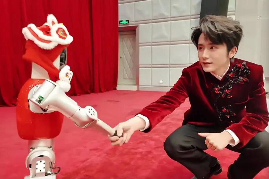 机器东谈主在后台与张新成执手 图片着手:春晚视频号截图