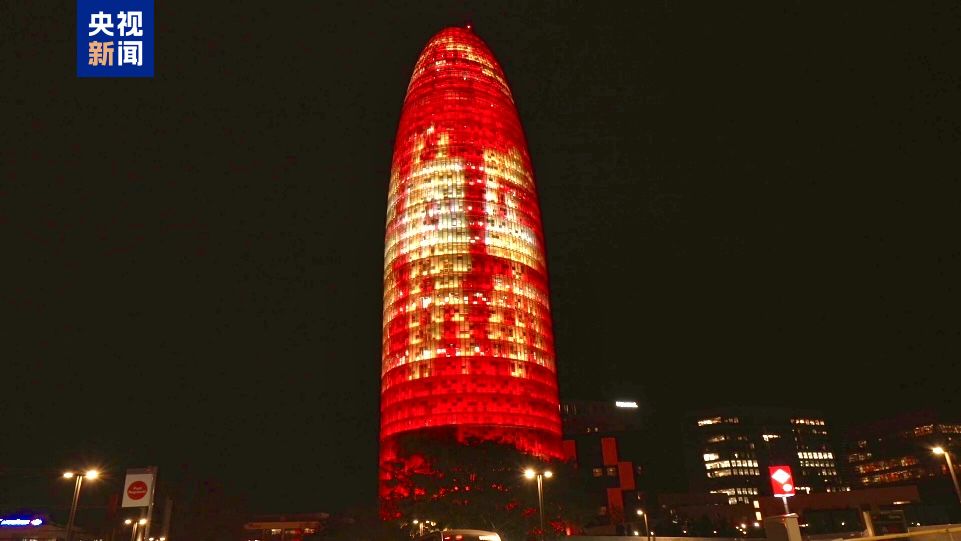 西班牙巴塞罗那荣耀塔点亮“中国红”并出动“新春怡悦”的道贺 图片着手:央视新闻