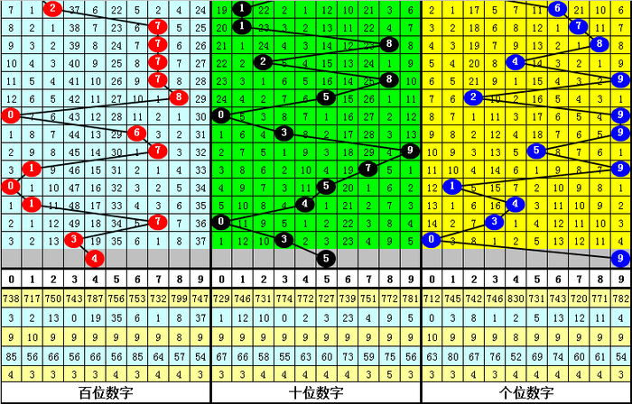 从上表不错看出,组选号码033开出之后,出现次数最多的三个号码差别为:369,本期防这三码中落号;出现次数最少的三个号码差别为:705,本期预测这三个号码不会同期出现,本期杀一码:7。