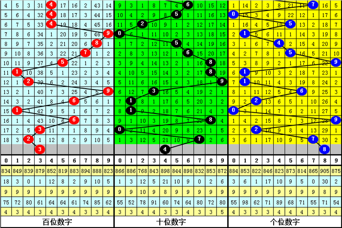 从以上统计不错看出,在组选散播图中,号码0开出9次,1开出4次,2开出5次,3开出10次,4开出4次,5开出9次,6开出6次,7开出9次,8开出8次,9开出5次,号码奇偶比为37:32,偶号发扬相对较冷,本期看好偶号回补,奇偶比为1:2;号码大小比为:37:32,小 号走势相对较冷,本期看好小 号回补,大小比参考1:2。